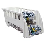 Keep your refrigerator and pantry shelves uncluttered with the help of this handy beverage can organizer. The Beverage Dispenser stores 12 cans of sodas or juices and conveniently dispenses them from a durable, easy-to-clean white plastic frame. A second unit may be stacked on top or used side by side. This can storage system saves space and makes it easy for you to see when it's time to restock soft drinks and other canned beverages. Please Note: not designed for canned foods. .